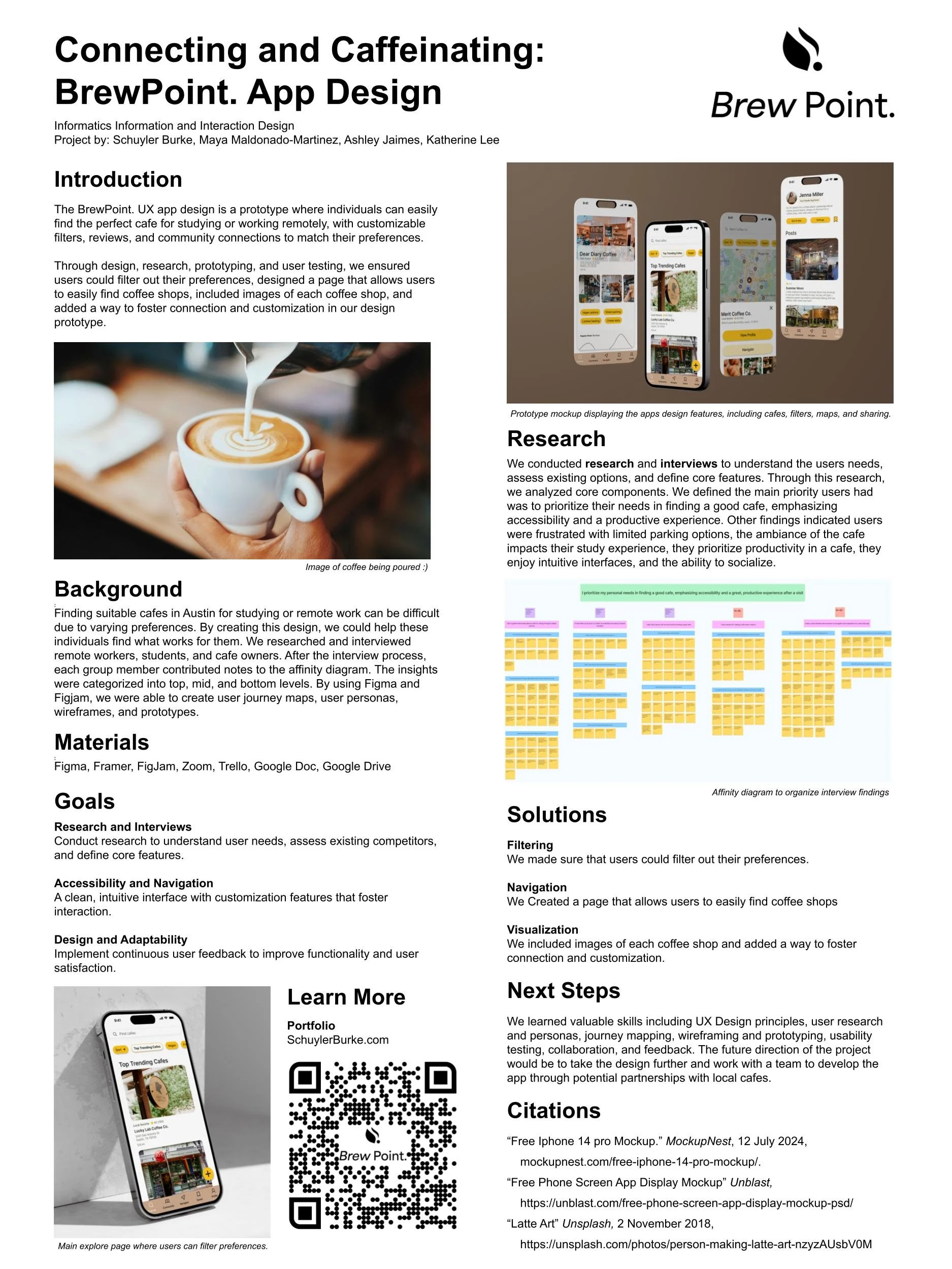 Our app design is a solution for finding the perfect cafe to study or work remotely. It offers customizable filters for pet-friendly spots, study-focused or social environments, menu options, and more.